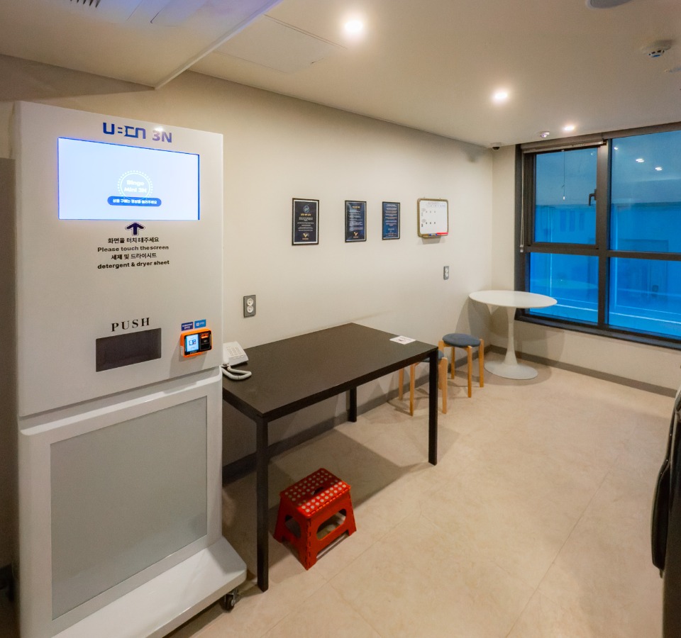 투숙객 무료이용 (필요 시 세제,드라이시트 별도 구매필요 / 1F 로비, 2F 세탁실 내부 자판기에서 판매 중. 현금 불가. 카드로 구매 가능)